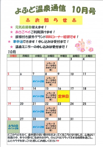 いつもよふど温泉をご愛顧いただき誠にありがとうございます。 このたびの臨時休業につきまして、当初の予定より早く準備が整いましたため 5月18日(日)より営業を再開させていただきます。 お客様にはご不便をおかけしましたこと …
